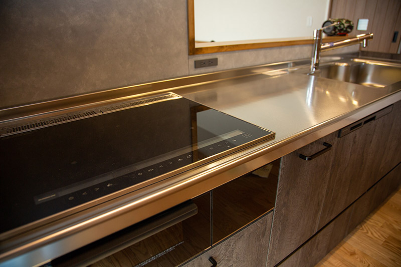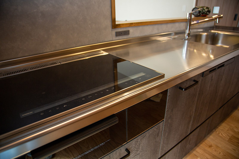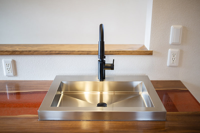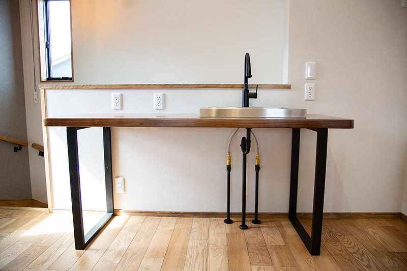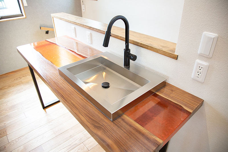 レジンを使用したカウンターのオリジナルキッチンやアイアン職人による造り付け家具で
