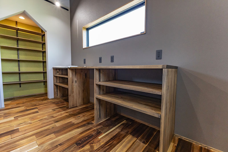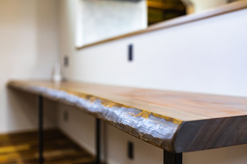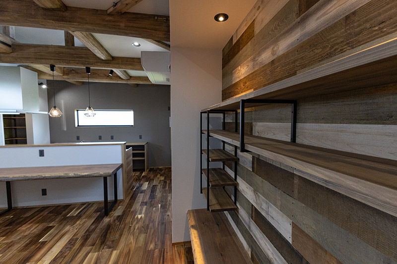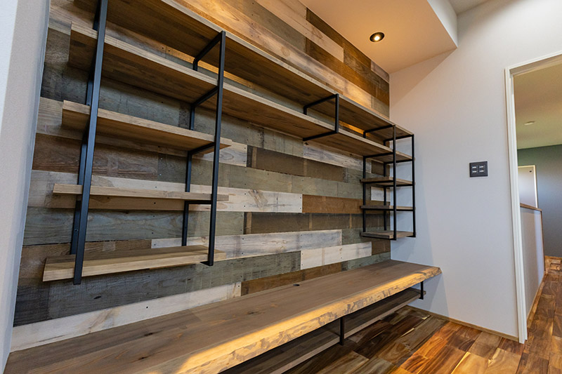 オリジナルの作り付け家具には木の材質はじめアイアン使いにもこだわりました。