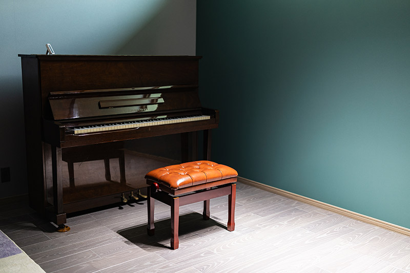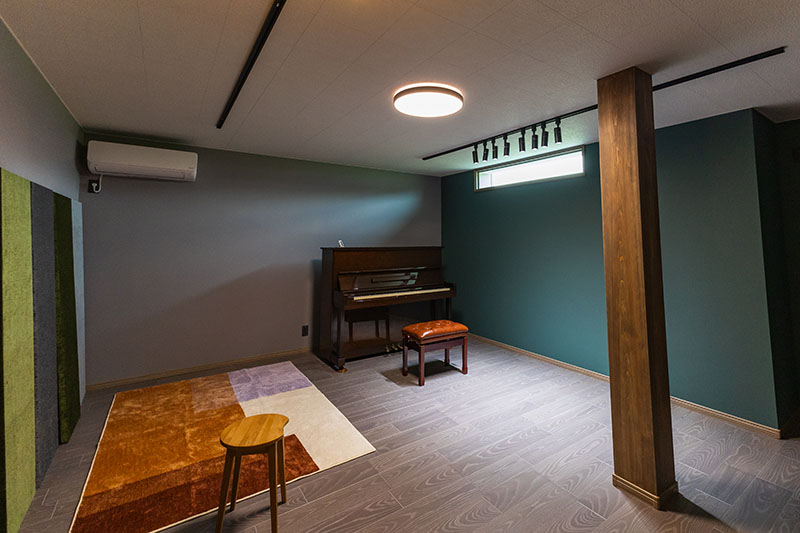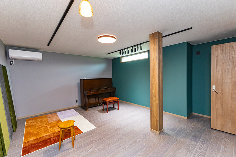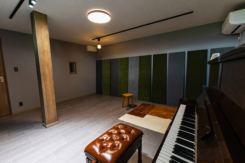 2階には趣味の楽器演奏が楽しめる防音仕様の練習室も完備。