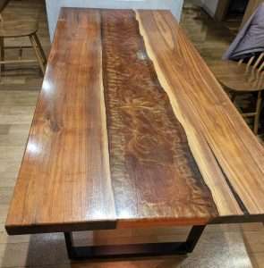 弊社では、レジンテーブルをはじめ、カップボード、テレビ台、収納棚、アイアン家具など、多彩な家具を製作しています。サイズ・カラー・材種など、お客様のご要望に合わせたフルオーダーが可能。一つひとつ丁寧に仕上げることで、暮らしに寄り添う特別な家具をお届けします。